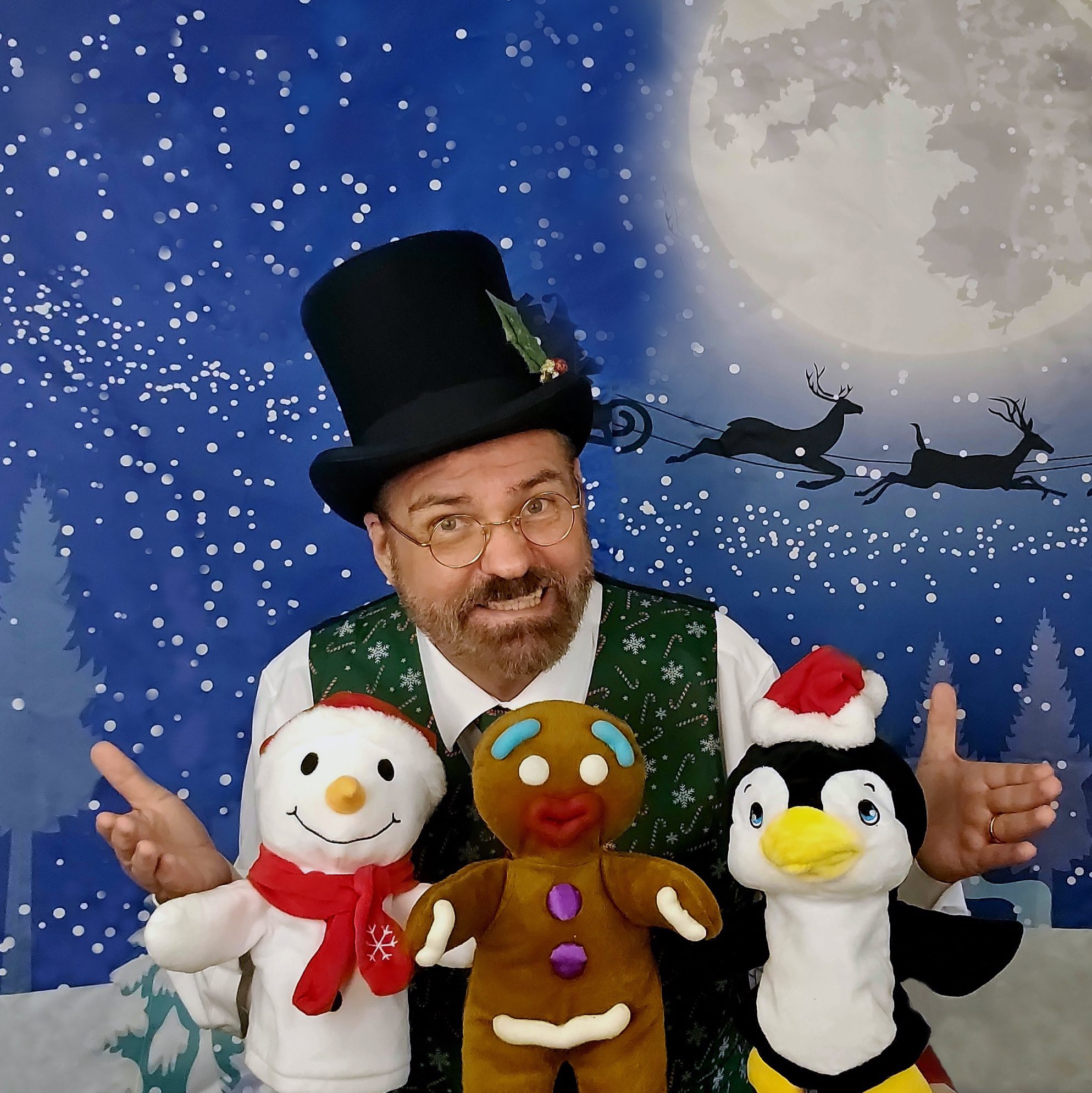 If your children are younger, Brett offers a Christmas puppet show. This thirty-minute show is packed with puppets and slapstick silliness. Brett spent seven years teaching kindergarten, so he knows what makes young children laugh. Not only does this show have puppets, but it has a few age-appropriate magic tricks that are guaranteed to make kids smile. Each routine is only a few minutes long, so it’s fast-paced and fun.