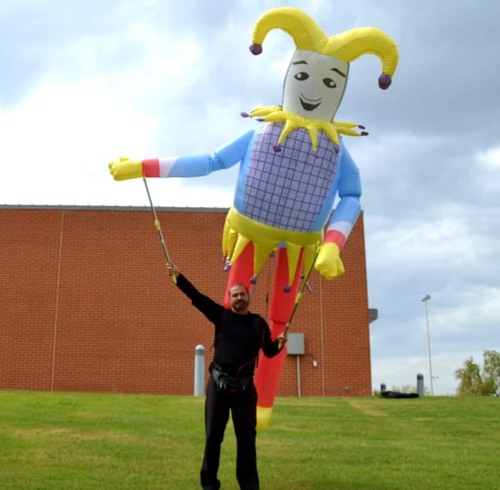 The Giant Jester is a twelve-foot-tall puppet that absolutely everyone at your event will be able to see. He’s a jester, so he’s appropriate for any event from Christmas to Halloween, to any carnival setting.